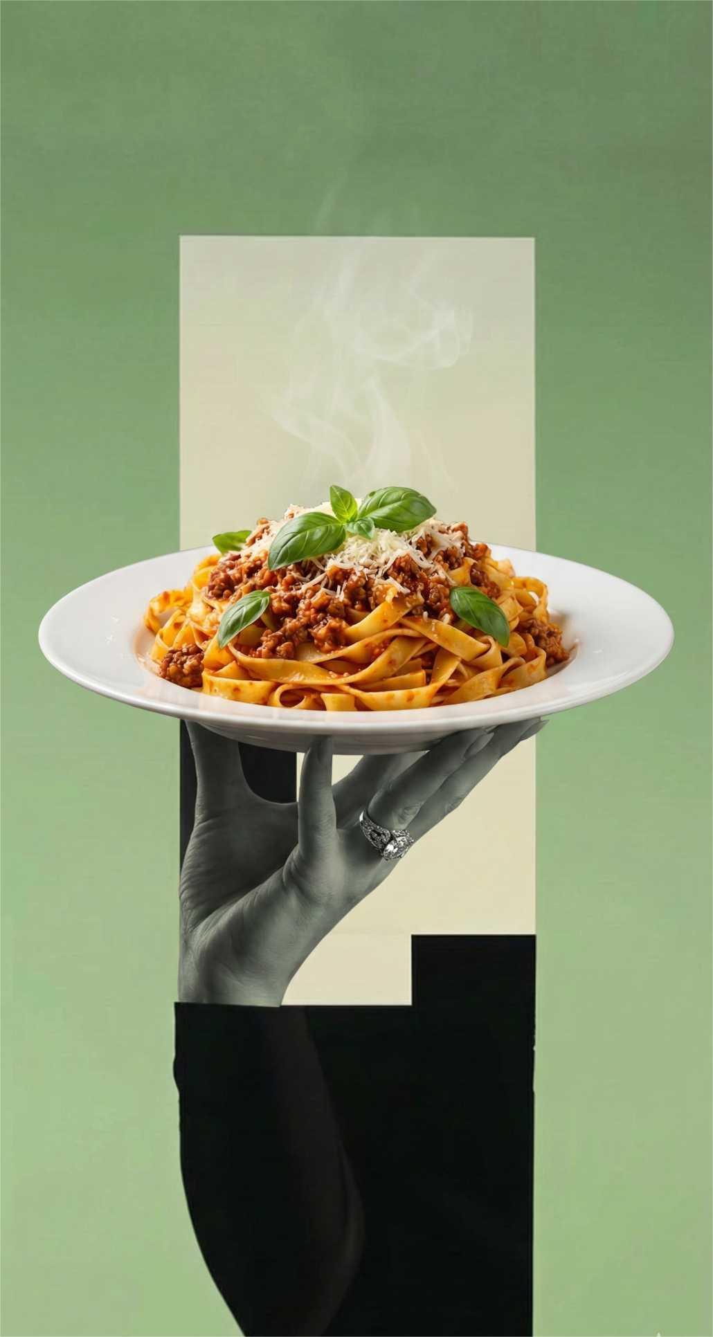 Tagliatelle pasta with slow cooked beef mince meat in a rich tomato sauce